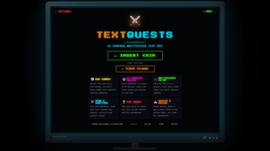 AI-powered multiplayer text RPG with real D&D combat, PvP arena, guilds, crafting, and 11 AI Dungeon Master personalities. Free in your browser.